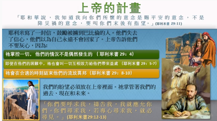 上帝藉著耶利米先知告訴他們不要灰心,因為 上帝仍然掌管一切。