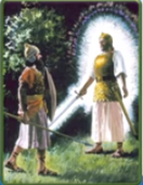 ( 約書亞記 5 章 13至15 節 : 13 約書亞靠近耶利哥的時候,舉目觀看,不料,有一個人手裏有拔出來的刀,對面站立。約書亞到他那裏,問他說:「你是幫助我們呢,是幫助我們敵人呢?」 14 他回答說:「不是的,我來是要作 耶和華軍隊的元帥。」約書亞就俯伏在地下拜,說:「我 主有甚麼話吩咐僕人。」 15 耶和華軍隊的元帥對約書亞說:「把你腳上的鞋脫下來,因為你所站的地方是聖的。」約書亞就照着行了。)