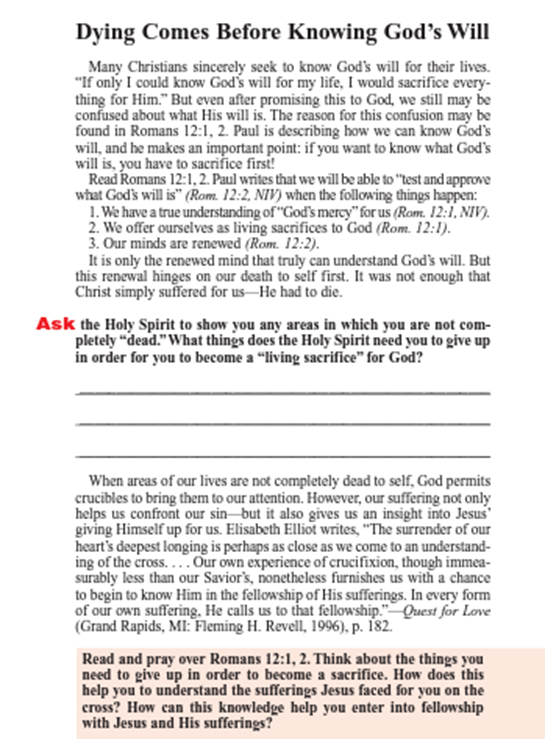 那改變就是: 我們將會擁有更新的思想,和擁有 上帝對我們人生的旨意。 每一次的獻祭,都需要付出代價,每一次也是試煉。我們要明白,自我的死亡是痛苦的。