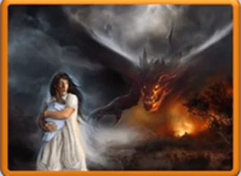 ( 啟示錄 12 章 2、4 節: 2 她懷了孕,在生產的艱難中疼痛呼叫。 4 牠的尾巴拖拉着天上星辰的三分之一,摔在地上。龍就站在那將要生產的婦人面前,等她生產之後,要吞吃她的孩子。)