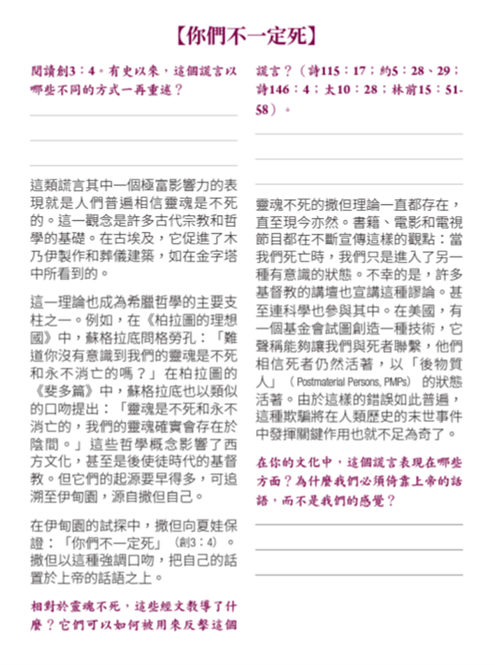 牠開始說服人類,說他們的身體是會死,但他們的靈魂是不朽壞的。