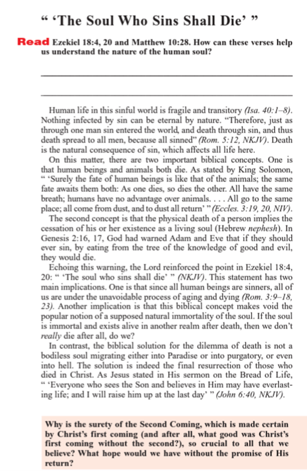 然而,聖經應許我們,義人在 耶穌基督第二次降臨的時候會復活。當他們復活的時候,他們就會第二次變成為不朽的生靈,即是人。