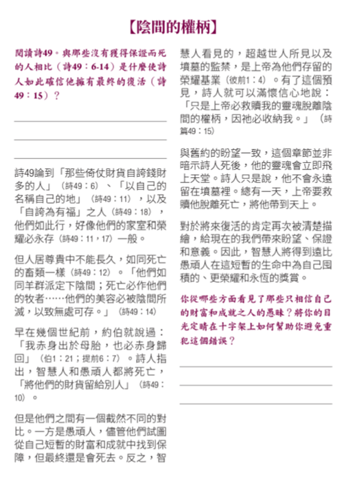 🎍 請看下一個題目: 「論死亡、死亡的狀態和我們將來的盼望」舊約的盼望 ~ 再活著時得到生命的支持、在死後得復活