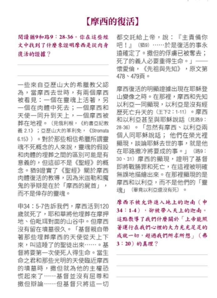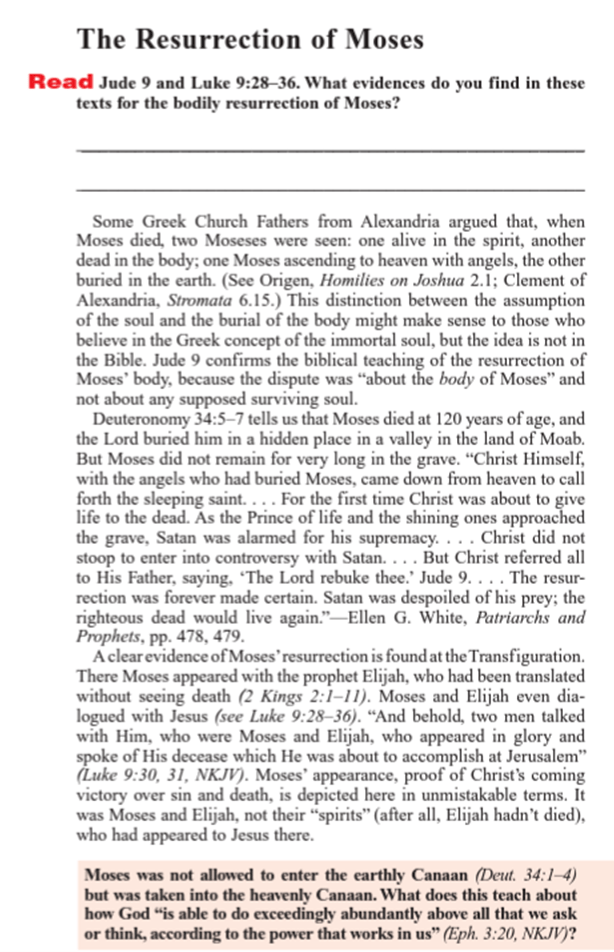 因此,從猶大書第九節,我們見到撒旦相信牠應該擁有摩西的身體,而爭著要摩西的身體。請大家注意: 牠不是為摩西的靈魂而爭戰,而是為摩西的身體的轉變而戰。