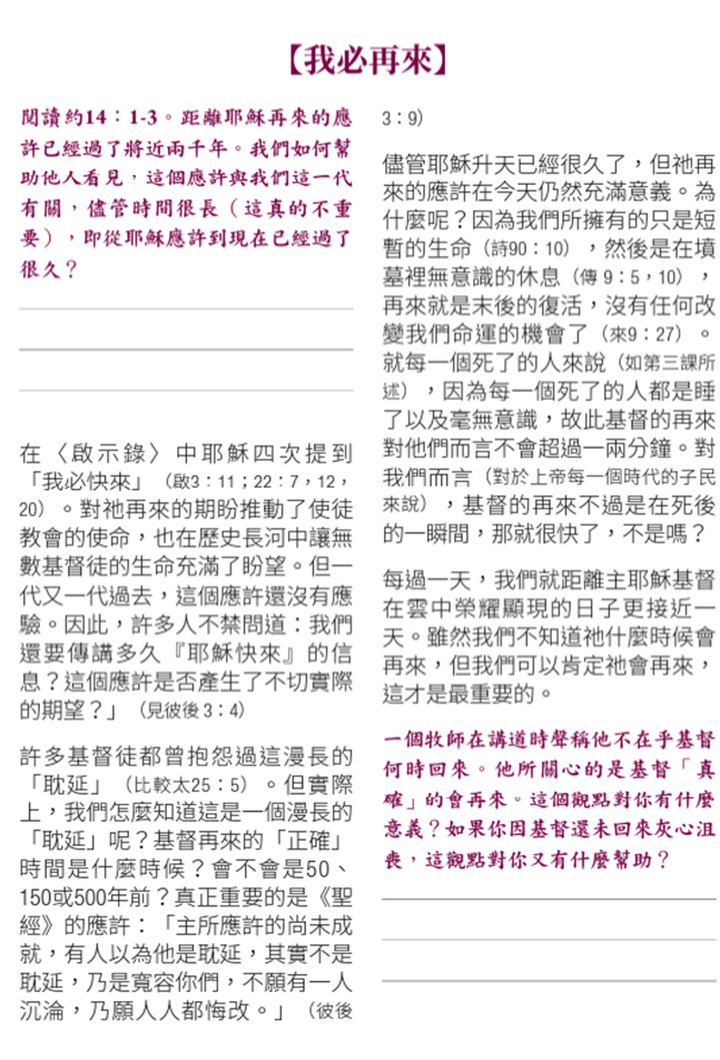 在約翰福音十四章一到三節,祂說 祂去是為我們預備地方,祂為我們預備了地方,必會再來接我們到 祂那裏去。