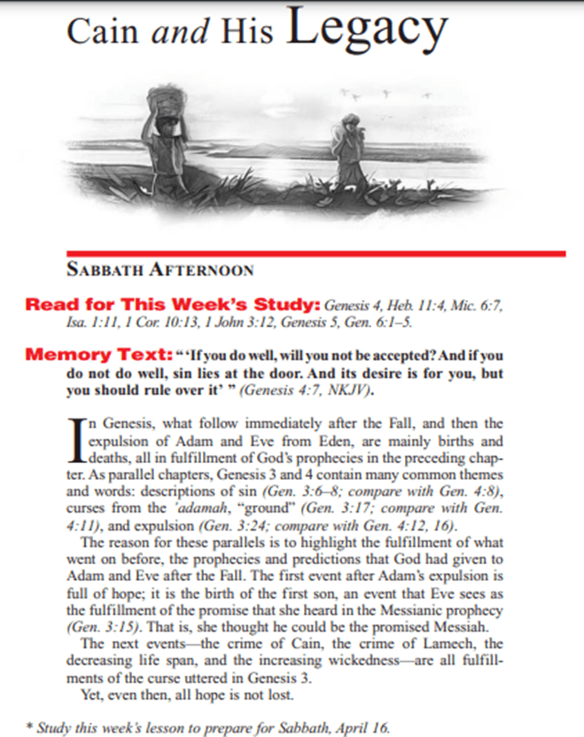 我們將會研究到該隱和他的後裔的敗壞、墮落。