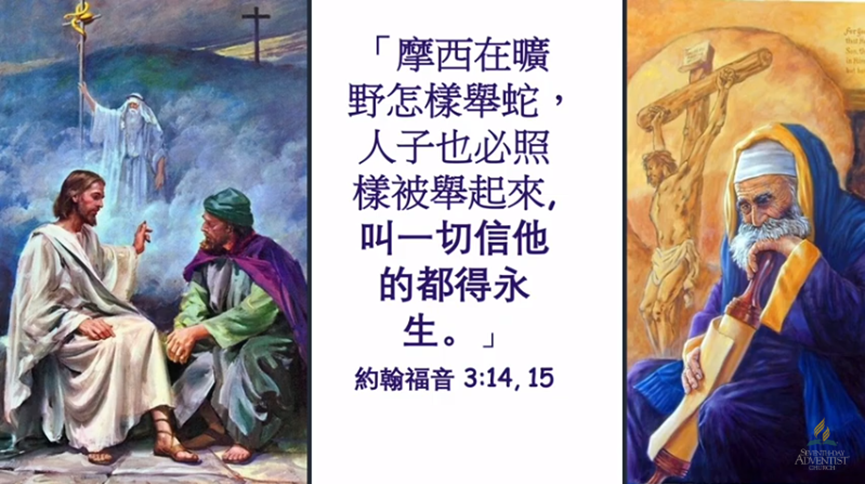 這一課的存心節,是記載在約翰福音,第三章十四及十五節 :