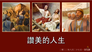 在沒有困難的時候,讚美 上帝是很容易的事; 但是,當我們受苦和面對麻煩的時候,我們怎麼能夠讚美 上帝呢? 其實 聖經充滿了一些在艱難的時刻讚美 上帝的人的故事。這一課就讓我們從他們的經驗中學習吧 !