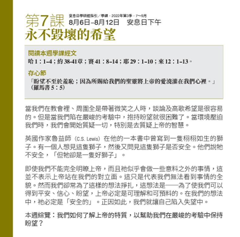 🎍 請看下一個題目:「與基督同受試煉」永不毀壞的希望: 希望的基礎: 知道結局 (哈巴谷書)