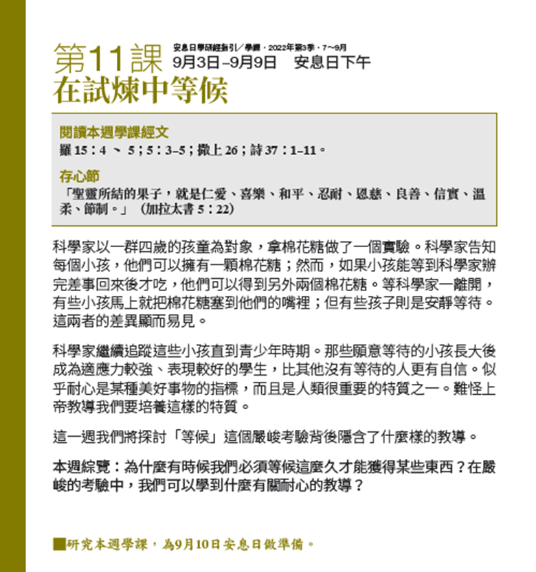 🎍 請看下一個題目:「與基督同受試煉」在試煉中等候: 關於耐心等候, 上帝說了什麼: 耐心和希望