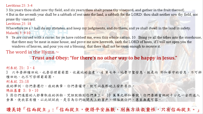 (希伯來書 10 章 36 節: 你們必須忍耐,使你們行完了上帝的旨意,就可以得着所應許的。)