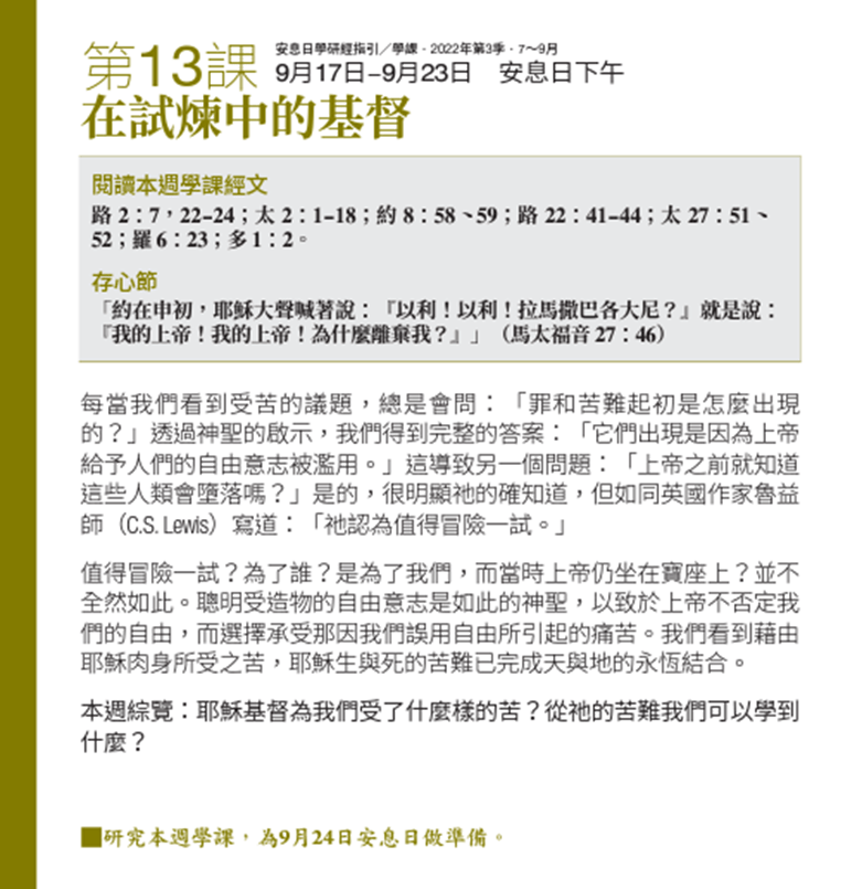 🎍 Welcome to Listen : Qtr 3 – Lesson Thirteen Christ in the Crucible