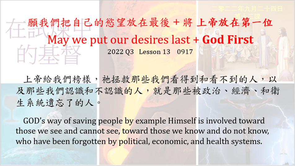 🎍 感謝 上帝引導 祂心愛的兒女們參閱此網站。我們會為每位代禱,祝願大家領受在 主耶穌內之平安、喜樂。 請大家緊握 上帝的手,忍耐等候那公義 上帝的應許,耶穌基督第二次的從雲彩榮耀降臨來迎接我們。互勉 !